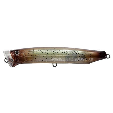 The mouse cup that plays pop sound even with a light jerk emphasizes sound quality. The floating posture, which is almost upright on the surface of the water, is easy to suck in, and concentrated popping of pin spots is also possible. Compact body, high specific density and excellent flight distance. It has a wide range of targets such as dolphin fish, bonito, tuna, greenery, and blackfin seabass, and can be used anywhere on the shore or offshore.